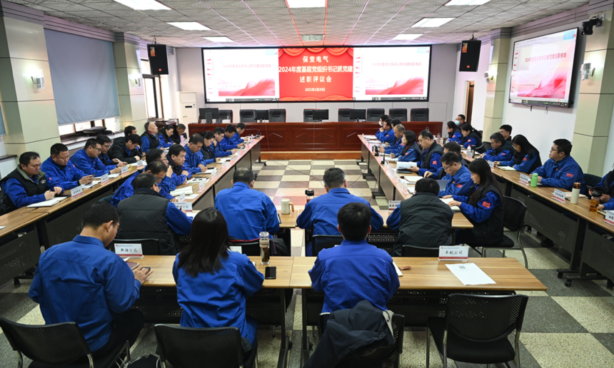 2月20日,保变电气党委召开2024年度基层党组织书记抓党建述职评议考核会。保变电气党委书记、董事长刘淑娟传达中国电气装备党委书记、董事长李洪凤,党委副书记、董事、总经理周群到保变电气调研时提出的要求,对基层党组织书记抓紧抓实抓优2025年党建工作提出要求。保变电气总经理、党委副书记刘东升,党委副书记、工会主席赵永强,党委委员、副总经理周爱东、张冠军、刘海明出席。