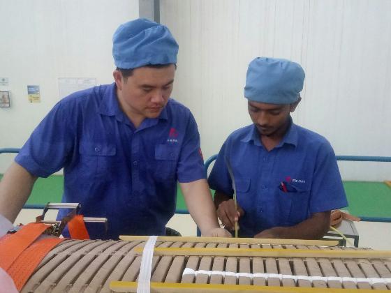 30多摄氏度的高温,他们没有退缩,虽然汗水早已把衣服打湿,语言沟通仍存在障碍,但他们还是以饱满的热情,不厌其烦地指导着印度员工每个关键节点的注意事项,一遍不明白就一遍遍的重复,从严要求,一丝不苟,保质保量按生产计划向前推进。